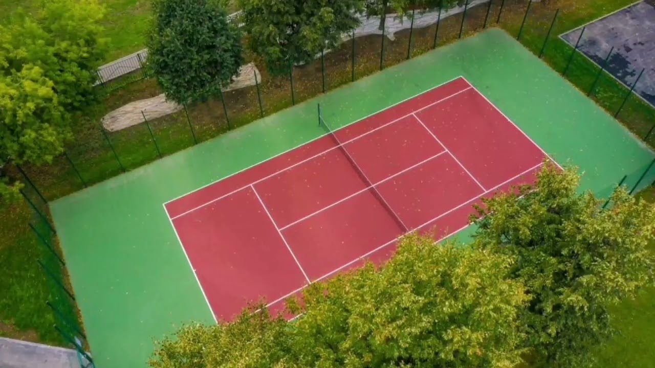 Сегодня пешеходные дорожки и теннисные корты покрыты бесшовным резиновым покрытием.